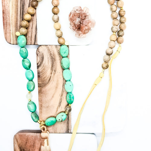Transformation: Labradorite Sandalwood Mala (Deer Leather)
