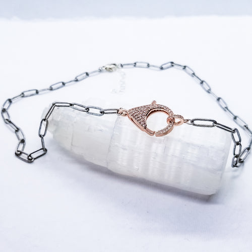 Rosegold Micro Pavé CZs Lobster on Antique Paperclip