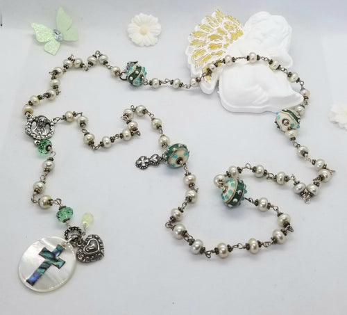 Radiate your Inner Madonna ♰🙏📿: Pearly Cross (White & Silver & Blue)