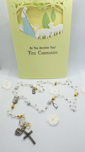 Radiate your Inner Madonna❤🙏📿: NIEVES - Snow Rosary (Gold & Silver & White)