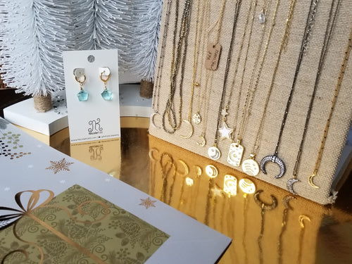 Moon Phases & Starry Sky with Moon Tag (Gold CZ Stars)